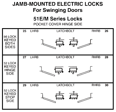 FA SWING/KEY/HAND CHART 50E & 50M SERIES LOCKS